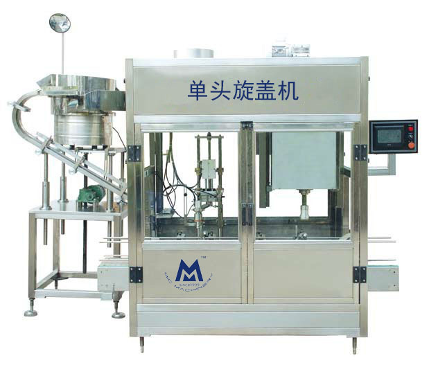本機(jī)專門(mén)針對(duì)4L-30L的大桶設(shè)計(jì)的帶理蓋裝置的旋蓋機(jī)。它具有運(yùn)轉(zhuǎn)平穩(wěn)、噪音低、旋蓋率高等優(yōu)點(diǎn)。本機(jī)可根據(jù)實(shí)際灌裝瓶/桶的高度,調(diào)整抓蓋部件的高低,保證蓋子能順利進(jìn)入推蓋部件,并被抓蓋頭順利抓走后放在瓶/桶口上。本機(jī)符合GMP要求。